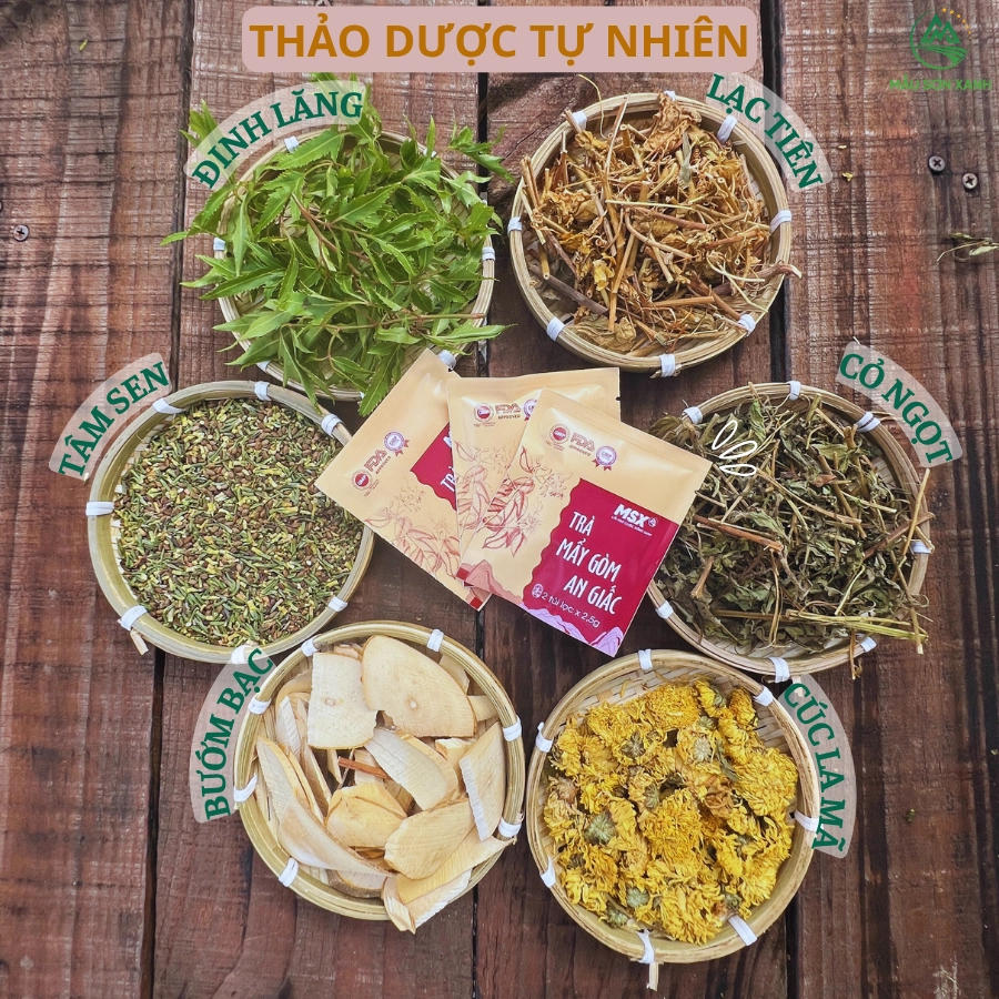 • Thành phần: Đu đủ rừng, Bướm bạc, Lá vông, Tâm sen, Cúc la mã, Đinh lăng, Lá sen, Cỏ ngọt, Lạc tiên